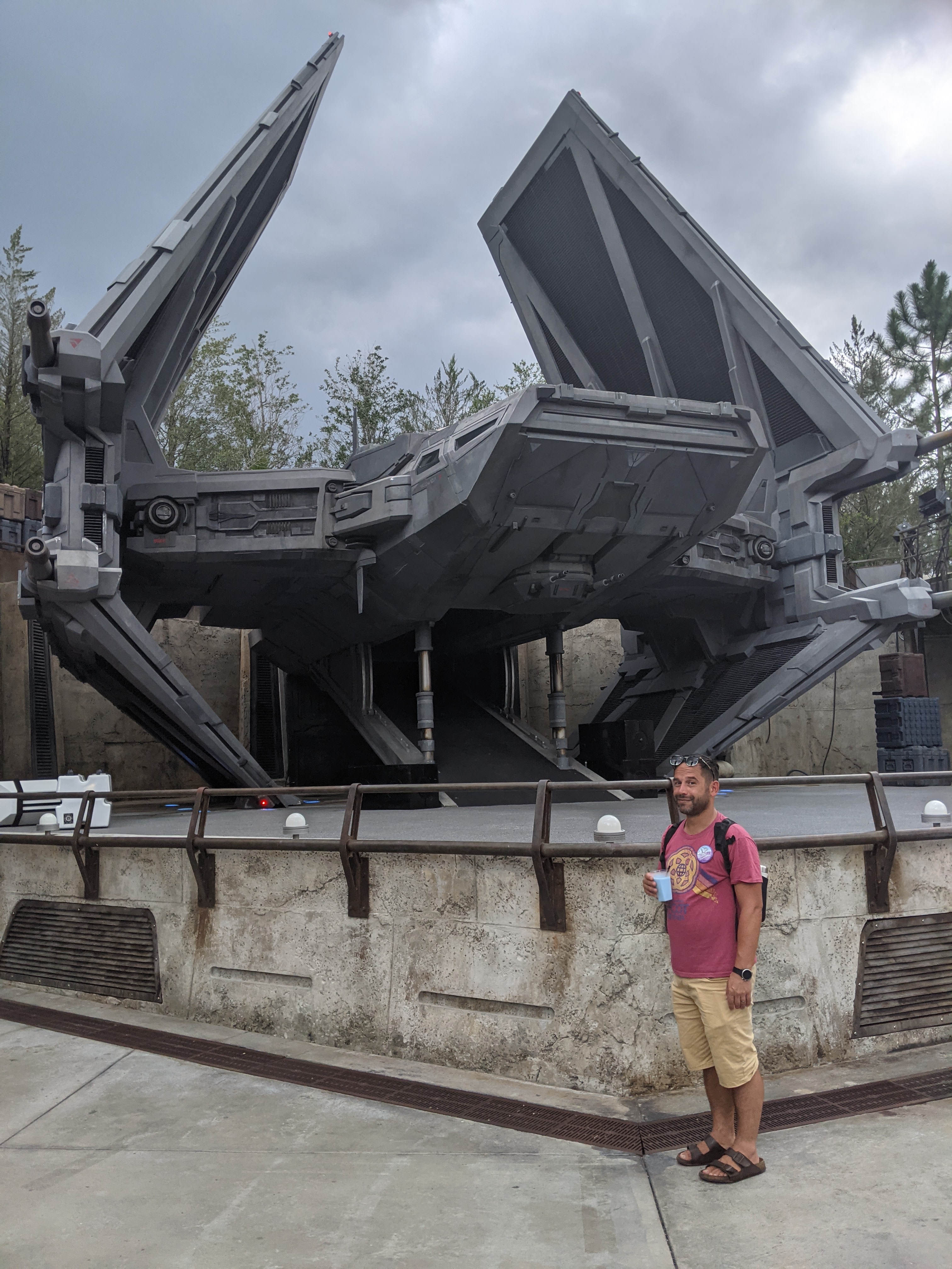 And then there was the showstopping ride, Rise of the Resistance. If you’re like me, you’d probably expect the chance to drive the Millennium Falcon in the other ride in this park, Smuggler’s Run, to be the end-all experience for a fan of the movies, however, considering that was little more than another Star Tours, but with more button pressing, it wasn’t as exciting as I had hoped. But Rise of the Resistance makes you literally feel like you’re in the movies, being captured by Space Nazis and having to escape through a series of chaotic action which includes lightsabers cutting through ceilings, watching blaster fire overhead, and coming face to face with a full-sized AT-AT (which, as you might remember from a few paragraphs ago, is one of my earliest memories of anything). This ride is not only the next step in themed entertainment from the fact that there are three different rides stacked into one ride experience, but also because of the emotion of it all. You’re not just standing in line after the pre-show waiting to be loaded into the ride vehicles, no, you’re lined up by the First Order, waiting to be loaded into a prison transport, standing next to a wall covered in flashing buttons that simply beg to be pressed whenever your captors turn their backs.
